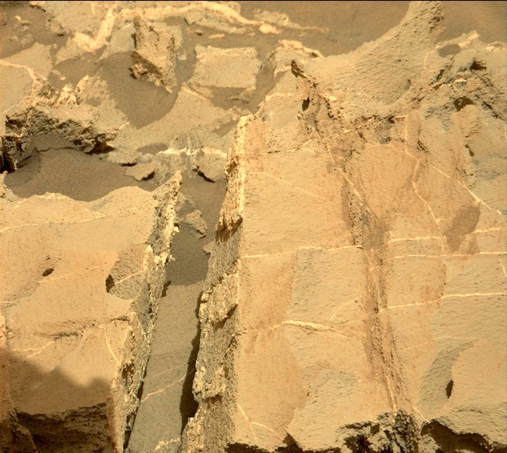 Using an onboard focusing process, the Mars Hand Lens Imager (MAHLI) aboard NASA's Mars rover Curiosity created this product by merging two to eight images previously taken by the MAHLI, located on the turret at the end of the rover's robotic arm.