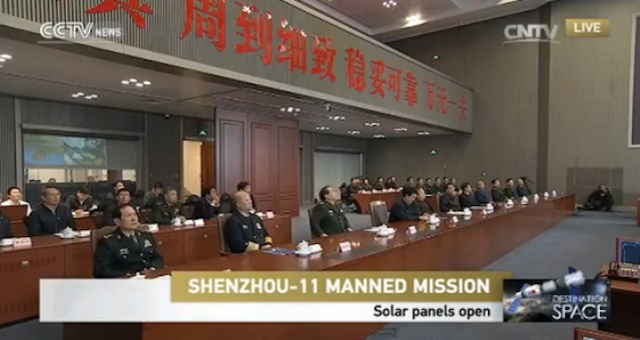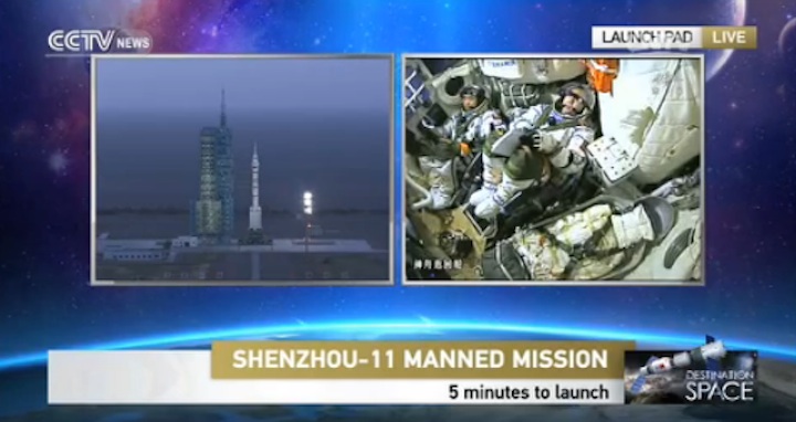 Shenzhou-11 is expected to dock with the orbiting space lab Tiangong-2, which was launched from Jiuquan on Sept. 15. The astronauts will stay in the space lab for 30 days before returning to Earth.