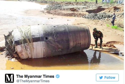 “Experts are there checking it,” said Kachin State government deputy director U Zaw Myo Nyunt. “They also assumed that it was part of some aircraft or rocket.”