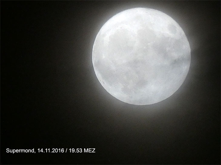 Am Montag war der Supermond über dem Odenwald nur noch durch die erste Wolkenfront des Wetterumschwungs zu sehen, aber der Versuch war es wert ihn zu fotografieren:
