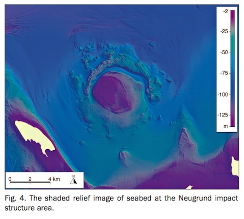 Results on the Neugrund crater can be found in Suuroja et al. A comparative analysis of two Early Palaeozoic marine impact structures in Estonia, Baltic Sea: Neugrund and Kardla. Bulletin of the Geological Society of Finland, 85, 79-97, 2013:
