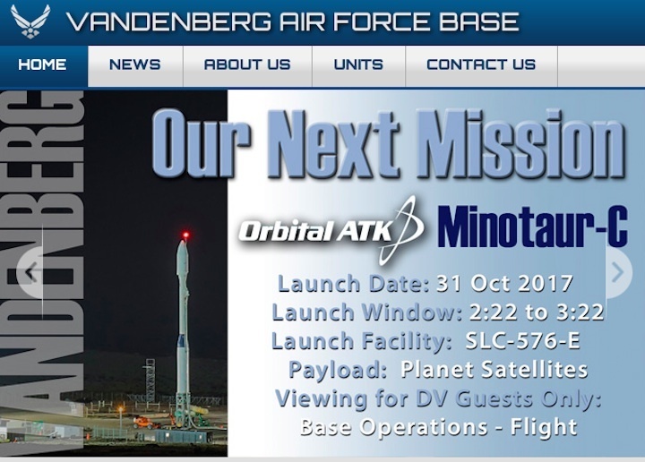 Orbital ATK is set to launch its Minotaur C rocket on October 31, 2017 from Vandenberg Air Force Base, California, on October 31 at approximately 2:37 p.m. PDT. Minotaur C will carry Planet’s SkySat and Dove spacecraft, which will capture medium and high resolution multispectral imagery of Earth at unprecedented scale and frequency for the commercial market. Approximately 12 minutes into flight the ten Planet spacecraft will deploy into their targeted sun synchronous orbit 310 miles (500 kilometers) above the Earth.