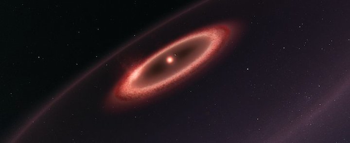 [2] Proxima Centauri ist ein recht alter Stern und hat ein ähnliches Alter wie das Sonnensystem. Die Staubgürtel, die ihn umgeben, ähneln wahrscheinlich dem Reststaub im Kuipergürtel sowie dem Asteroidengürtel im Sonnensystem und dem Staub, durch den das sogenannte Zodiakallicht entsteht. Diese eindrucksvollen Scheiben, die ALMA um deutlich jüngere Sterne wie HL Tauri abbilden konnte, enthalten deutlich mehr Materie, aus der Planeten entstehen.