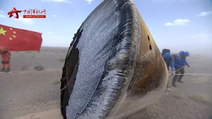 Subscale re-entry capsule being recovered after landing in Inner Mongolia