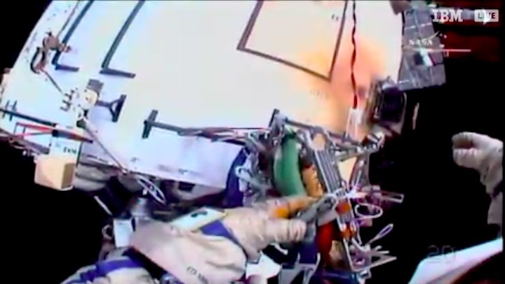 The pair watched in dismay as the antenna got hung up on the Russian side of the complex and could not be extended properly. The antenna — a long boom with a 4-foot dish at the end — had been folded up before the repair work.
