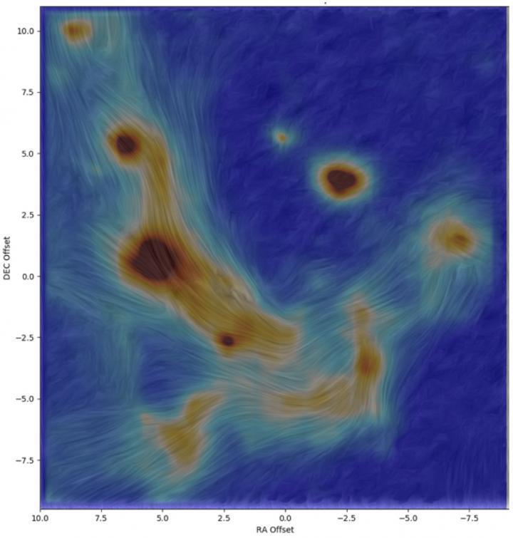 A research team has published a new study lead by Pat Roche, professor of astrophysics at The University of Oxford, and Chris Packham, associate professor of physics and astronomy at The University of Texas at San Antonio. It reveals a new high resolution map of the magnetic field lines in gas and dust swirling around the supermassive black hole at the center of our galaxy. The team created the map, which is the first of its kind, using the CanariCam infrared camera attached to the Gran Telescopio Canarias on the island of La Palma.